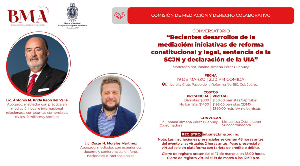 COMISIONES da clic para ver más contenido Comisión de Mediación y Derecho Colaborativo Teléfonos: 5208-3115 y 5208-3117 haz clic aquí para registrarte a la sesión